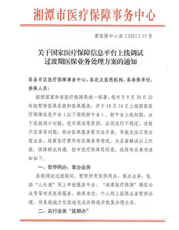 關于國家醫(yī)保平臺上線過渡期業(yè)務處理方案的通知